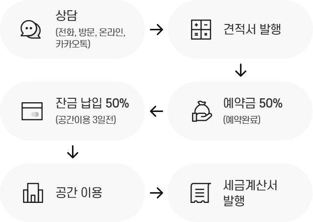 - 잔급 납입 50%(공간이용 7일전)